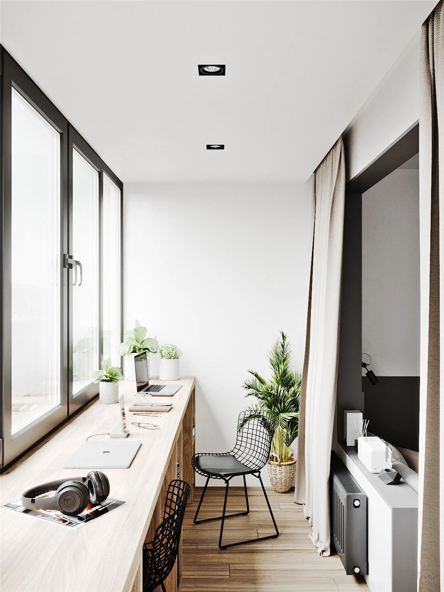 陽(yáng)臺(tái)改造成書(shū)房 陽(yáng)臺(tái)空間一般都比較小,可以考慮改成小書(shū)房,畢竟小書(shū)房需要的空間不大,小小的陽(yáng)臺(tái)利用起來(lái)更合適,而且采光好。色調(diào)方面可以選擇自己喜歡的顏色,再放些精致小盆栽,打造屬于自己得清新的舒適書(shū)房。