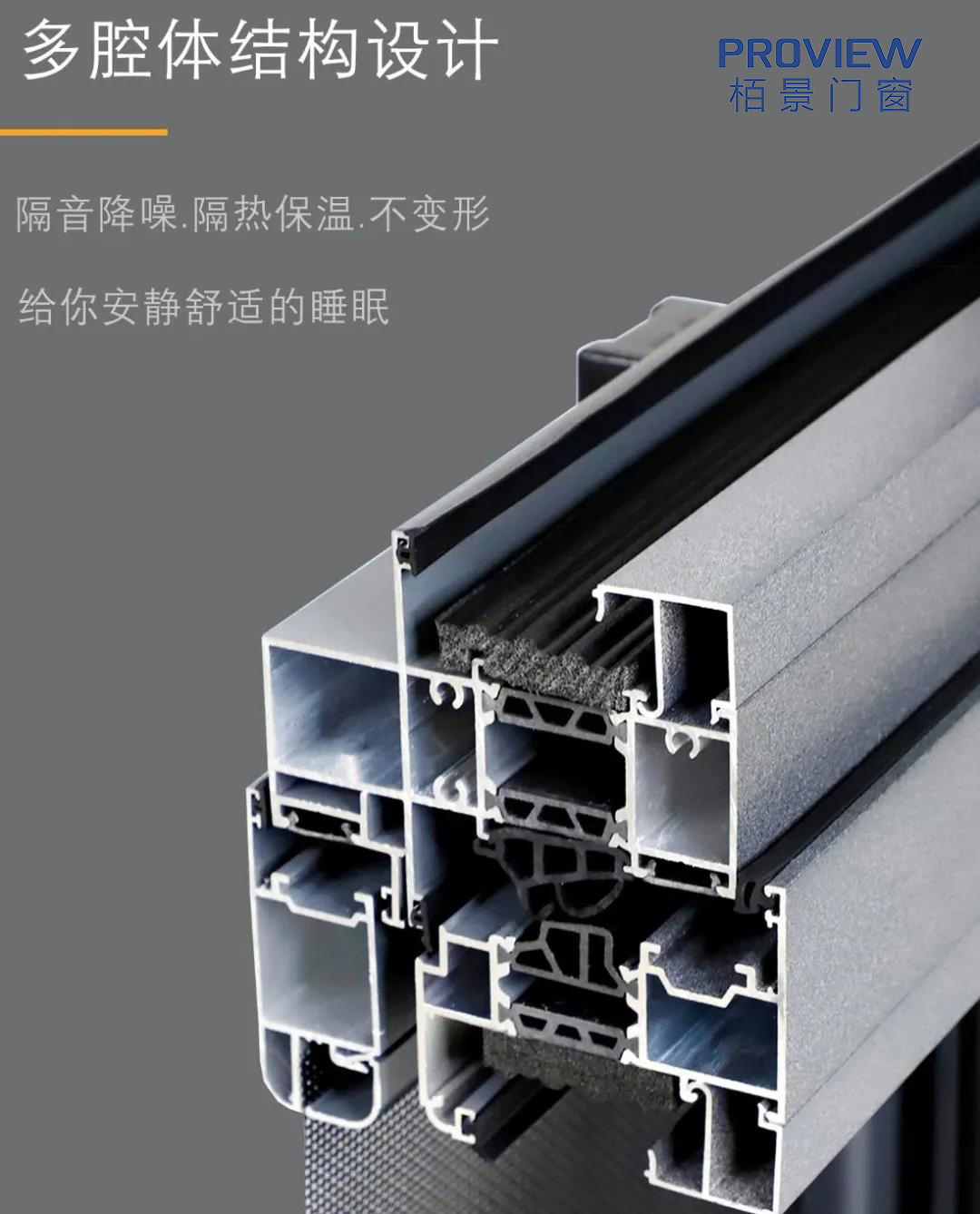 多腔體結(jié)構(gòu)設(shè)計,使得各個腔室獨立,能有效地阻隔熱能的傳導(dǎo),增強了門窗保溫隔熱性能,大大降低室內(nèi)能耗,還能夠有效隔絕噪音污染,使得居家體驗更加舒適美好。