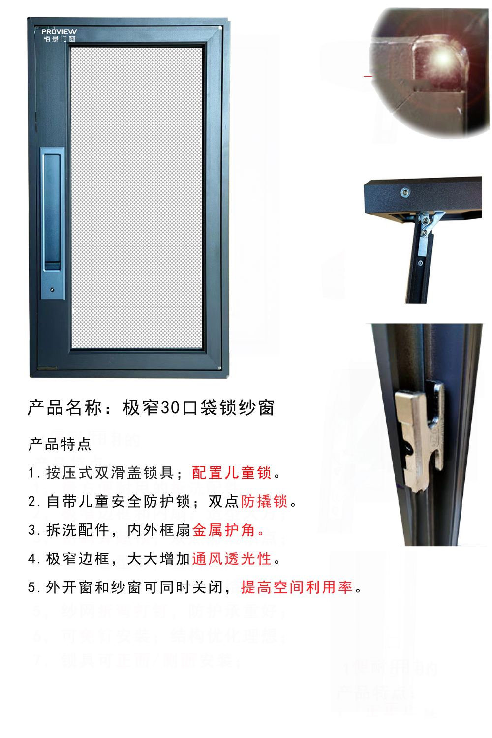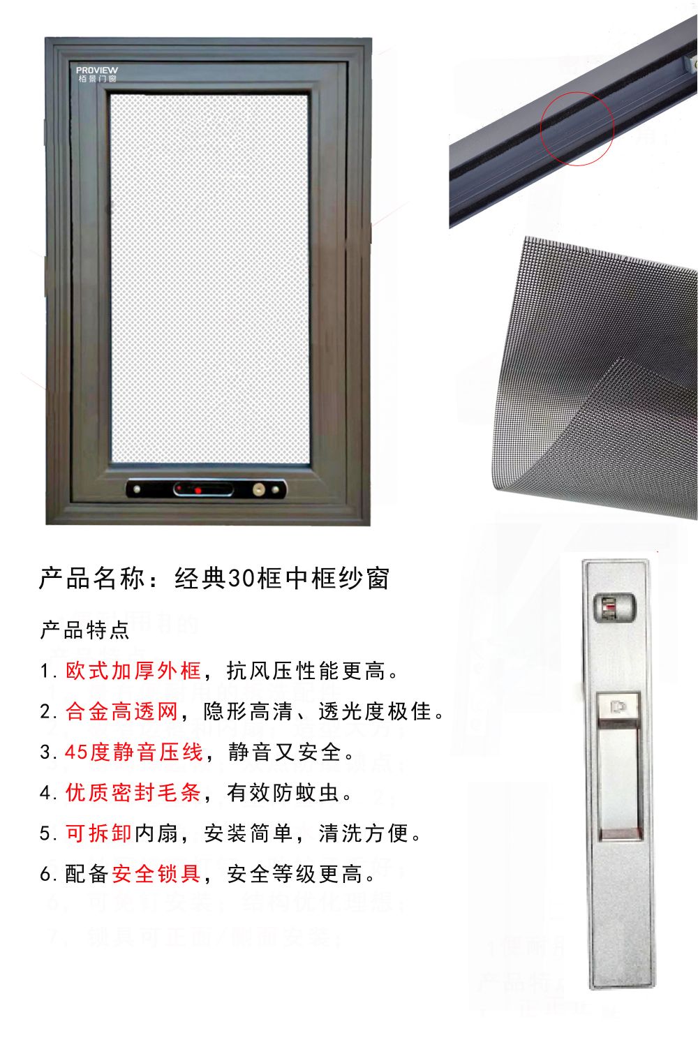 栢景金剛網(wǎng)紗窗系列 栢景門窗金剛網(wǎng)紗窗采用優(yōu)質(zhì)鋁材,長久使用也不易變形;極簡設(shè)計操作便捷,經(jīng)久耐用;采用國標304不銹鋼金剛紗網(wǎng),紗窗編織密度小將蚊蟲拒之門外;多種顏色可選,實用與美觀兼?zhèn)洹?/p>