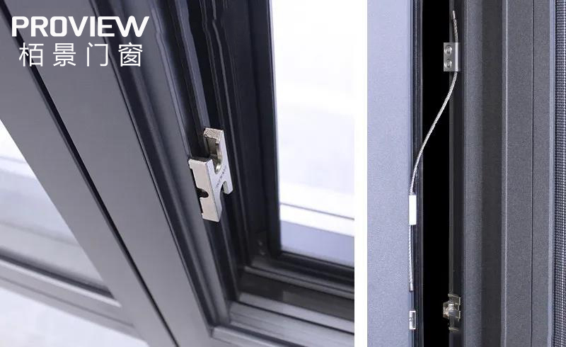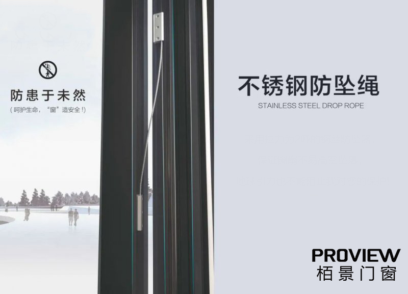 栢景平開窗系列門窗防墜繩采用優(yōu)質強韌不銹鋼索與防墜器,其承重拉力可以穩(wěn)穩(wěn)拖住60KG以上的門窗重物。一繩在“守”,守住安全。