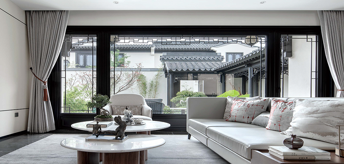 中式門窗花格根據(jù)需求可選擇中空內(nèi)置或外置花格,錯綜復(fù)雜的圖案無不蘊含著豐富的吉祥寓意。